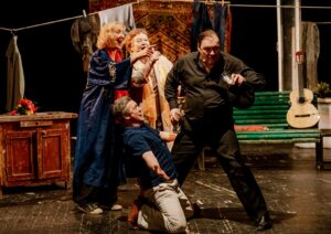 Спектакль «Песни нашего двора» — не просто ностальгия, это попытка вернуть дыхание и почувствовать сердцебиение той эпохи. Он переносит нас туда, где ещё звучит голос матери, зовущей домой, где запах свежеиспечённого хлеба смешивается с ароматом липовых алей, где летние вечера наполнены бесконечными разговорами под ленивый стрекот кузнечиков.
