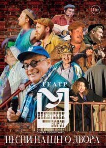 «Песни нашего двора» – это уникальное театральное произведение, давно завоевавшее любовь зрителей, посмотреть на которое специально съезжаются театралы из разных уголков планеты, попасть на него – большая удача! Этот спектакль – самая яркая «визитная карточка» театра «У Никитских ворот». Марк Розовский придумал нечто с простым названием – «Песни нашего двора», и это нечто получилось на редкость волнующим. Говорят, что в хороших спектаклях рушится «четвертая» стена между зрительным залом и сценой.