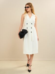Платье в стиле casual— воплощение элегантного минимализма. Универсальный фасон, чистый крой, этот наряд легко адаптируется под атмосферу праздника. С босоножками на каблуке — для торжественного ужина, с мюлями — для прогулки по по городу.