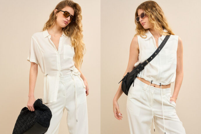 Элегантные брюки — то, без чего невозможно представить лето. Прямые, с хорошей посадкой и легкой текстурой. Они отлично сочетаются с блузами и футболками из коллекции, позволяя легко варьировать настроение: от делового до курортного.