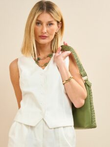 Летом он особенно уместен. У Crazy Line — жилеты прямого кроя, которые можно надевать и на топ, и на платье, и с брюками. Он добавляет образу структуру, но при этом не перегружает.