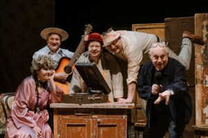Великолепный музыкальный спектакль — воспоминания, ожившие в каждом звуке, в каждом взгляде и движении, в самом воздухе, пропитанном щемящим духом ушедших лет. Именно эти песни становятся главными действующими лицами спектакля. Они не просто аккомпанируют действию; они сами по себе являются ключом от той двери, куда ушли наше детство и юность.