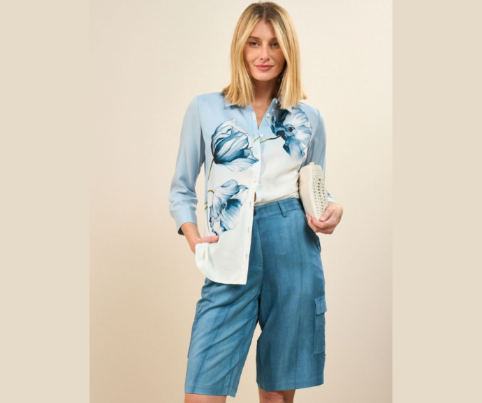 В летней коллекции Crazy Line флористический принт звучит легко, жизнерадостно и по-женски нежно. Даже самые сдержанные силуэты — вроде прямых платьев, базовых футболок и легких блузок — превращаются в романтичные и живые образы, стоит им «расцвести».
