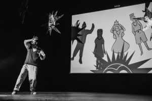 В спектакле заняты также Саша Макарская, Артем Будиков, Вадим Норштейн, Никита Олейников — артисты, которые получили классическое театрально и кино-образование, играли и на сцене, и в кино, но после начала войны приняли решение начать все заново в Израиле. Они сложили вместе свои умения и навыки, любовь к стране и к ее истории — и создали команду, у которой наверняка большое будущее.