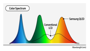 В телевизорах QLED от Samsung исключена необходимость в отдельном слое люминофора, что повышает световую и энергетическую эффективность дисплея, одновременно обеспечивая более насыщенные цвета. Технология QD-OLED (квантовая точка + OLED) объединяет в себе: