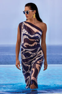 Полупрозрачные туники и халаты — для тех, кто хочет добавить в образ легкость и загадочность. Особенно выигрышно смотрятся модели с графичными принтами, фактурой сетки или вышивкой. Например, ажурные модели от Jack Kuba придают пляжному образу ту самую чувственность и элегантность;