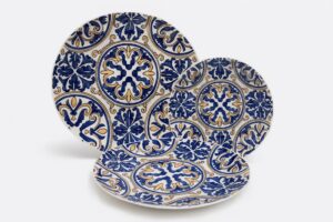 В центре коллекции – серия «Капри», наполненная светом и красками Средиземноморья. Керамические тарелки с акварельными орнаментами в синем и бирюзовом тонах, словно расписанные вручную, придают сервировке атмосферу лёгкости и радости. Коллекцию дополняют подвесные хамсы в бело-голубой гамме, керамические подставки с лимонным узором, стильные подставки для горячего и изящные соусницы с геометрическими рисунками. Позвольте себе маленькое праздничное путешествие на берега острова Капри.