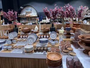В филиалах сети вы найдете множество оригинальных и функциональных решений для праздничного стола: стильная посуда — тарелки, блюда, чашки, пиалы и аксессуары для сервировки стола позволяют создавать гармоничные комплекты, сочетая цвета, узоры и формы. Благодаря многообразию коллекции каждый сможет найти элементы, идеально подходящие к интерьеру его дома – от классической элегантности и минимализма до живописных средиземноморских мотивов.