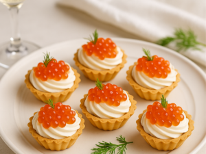 Тарталетки с красной икрой и сливочным муссом