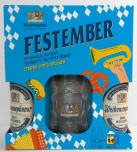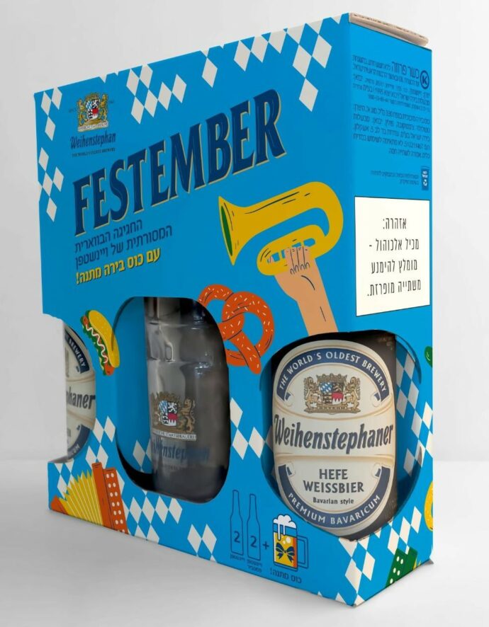 Чтобы отметить запуск пива в Израиле, Weihenstephan подготовил специальный подарочный набор в ограниченном тираже. В него входят две бутылки Festbier, две бутылки легендарного Weihenstephan Hefe и оригинальный баварский пивной бокал объёмом в треть литра – в подарок.
