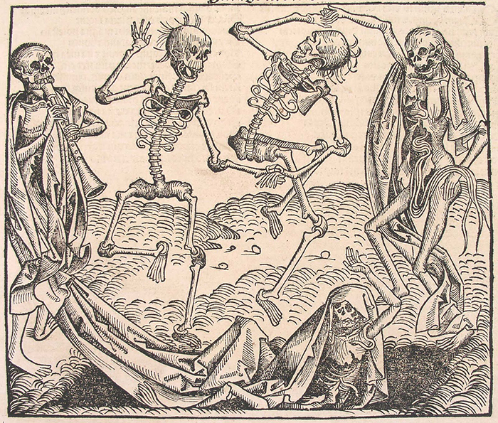 Гравюра изображает потенциальную угрозу смерти хореомании.