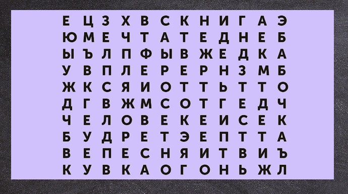 • Рассмотреть схему из букв на картинке, и определить самое первое слово, которое вы смогли прочитать.