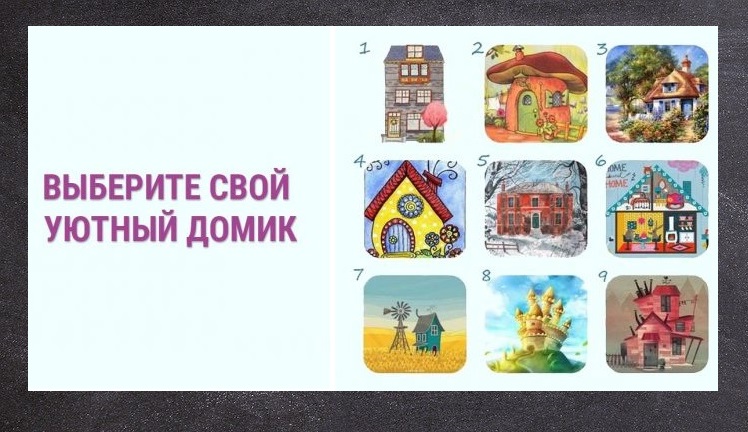 Посмотрите на иллюстрацию и быстро, не задумываясь, выберите один из домиков. Задумываться не надо потому, что в данном случае важно именно подсознательное, спонтанное решение.