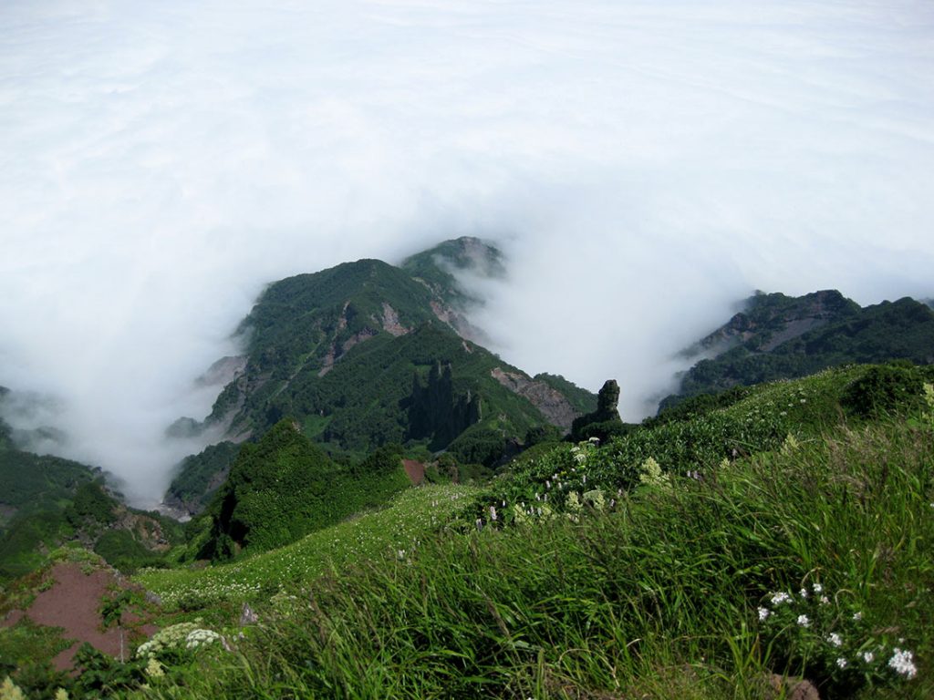 Гора Рисири, бездействующий вулкан и символ этого удаленного северного острова, захватывает дух, когда зимой вершину засыпает снегом. Но еще более эффектно она выглядит летом, когда здесь зацветают альпийские луга.