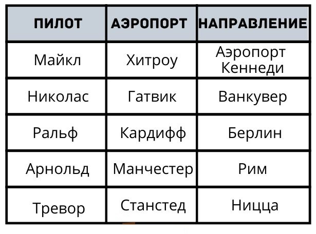 Проверьте своё логическое мышление, чтобы разобраться, какой пилот откуда полетит и куда направляется.