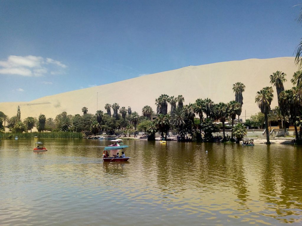 Недалеко от города Ика, посреди пустыни, расположен потрясающий оазис Уакачина с большим озером и пышными пальмами. Есть здесь и небольшая деревушка с приветливыми жителями. Чтобы лучше все увидеть, можно воспользоваться лодкой и поплавать по озеру.