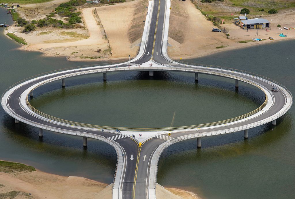 Необычный круговой мост замедляет движение и позволяет водителям, пешеходам и велосипедистам оценить панорамные виды на один из самых красивых и нетронутых прибрежных ландшафтов Уругвая.