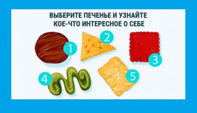 Вашему вниманию представлены пять печений. Вам нужно посмотреть на печения не больше десяти секунд и выбрать то, которое понравилось вам больше всего. Затем найдите характеристику, соответствующую вашему печенью и прочитайте её: