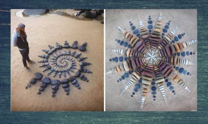 А когда он не использует найденные камни, Форман просто рисует на песке. Свои эпические творения он демонстрирует сверху, фотографируя их стоя на скале.