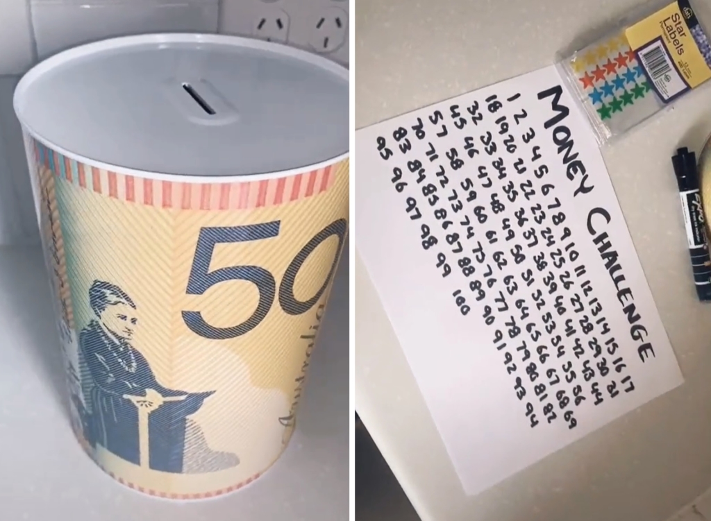Нужно написать на листочке бумаги цифры по порядку от 1 до 100 и наклеить на копилку. Далее класть денежки в копилку хотя бы раз в неделю, согласно следующей цифре и соответственно зачеркивать использованное число:
