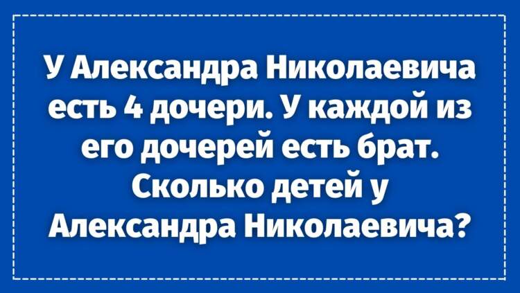 Задача 6: 5 детей, поскольку у Александра Николаевича 4 дочери и 1 сын.