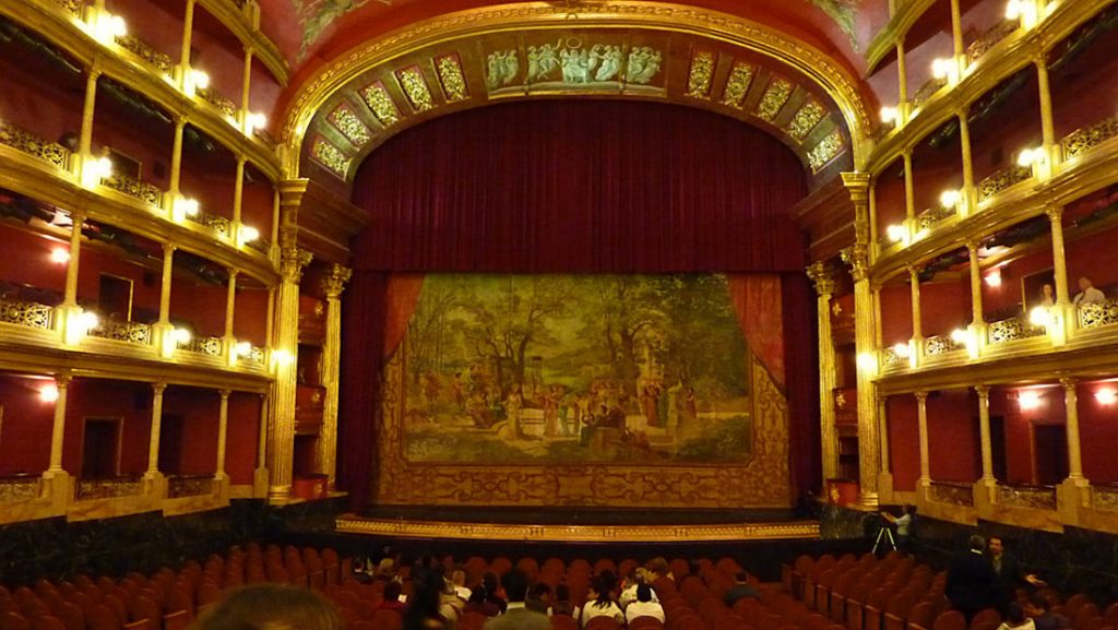 Есть в городе и театр. Он называется Деголладо. Открыт театр был в 1866 году. Его смело можно назвать произведением искусства. Эффектная потолочная фреска изображает сцену из Божественной комедии Данте. Ее создатели – Якобо Гальвес и Херардо Суарес. 16 коринфских колонн поддерживают мраморный тимпан Аполлона и девять муз, созданных Бенито Кастаньедой.