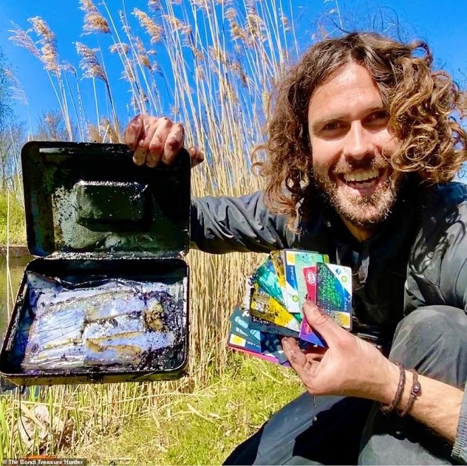 Он также провел время в Лондоне, бродя по реке Темзе в поисках сокровищ в приливных отмелях.
