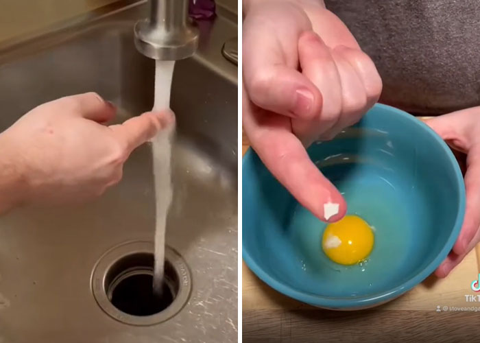 Доставать куски скорлупы из яйца удобнее мокрыми пальцами