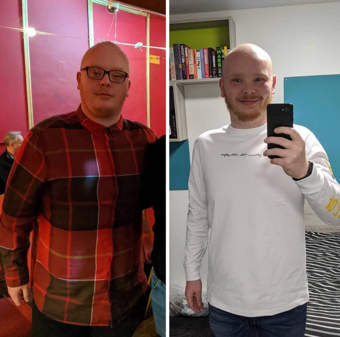 Спустя год молодой человек стал легче на 45 килограмм и внешне изменился практически до неузнаваемости. Кроме контроля в принятии пищи он начал заниматься физический активностью, и за год прошел более 500 километров.