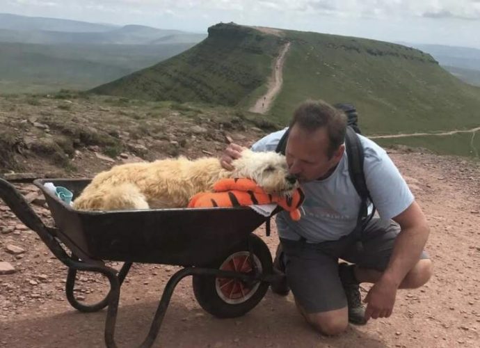 Мужчина понимал, что его любимец не сможет самостоятельно преодолеть этот путь. Поэтому Фреско взял садовую тачку, застелил ее одеялами. Хозяин решил, что пес должен отправиться в свой последний поход максимально комфортно.