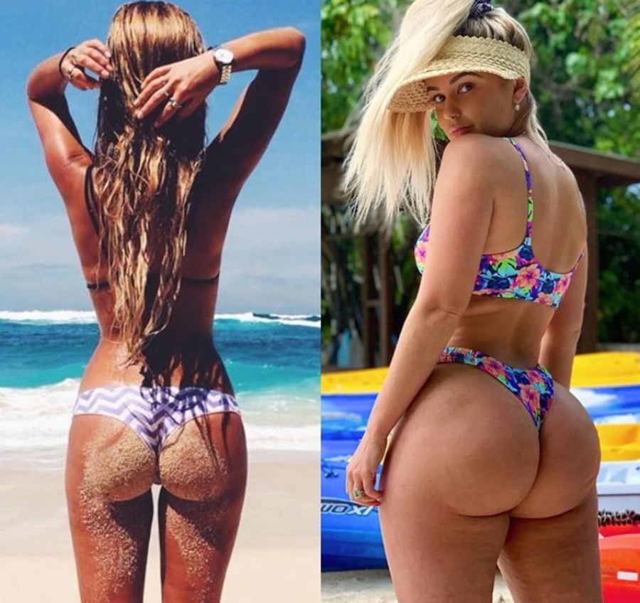 На снимке запечатлена девушка возрастом чуть за 20 лет. Она имеет практически идеальное тело. Однако ее лицо не светится от счастья. На втором фото тело сложно назвать идеальным, но глаза искрятся позитивом.
