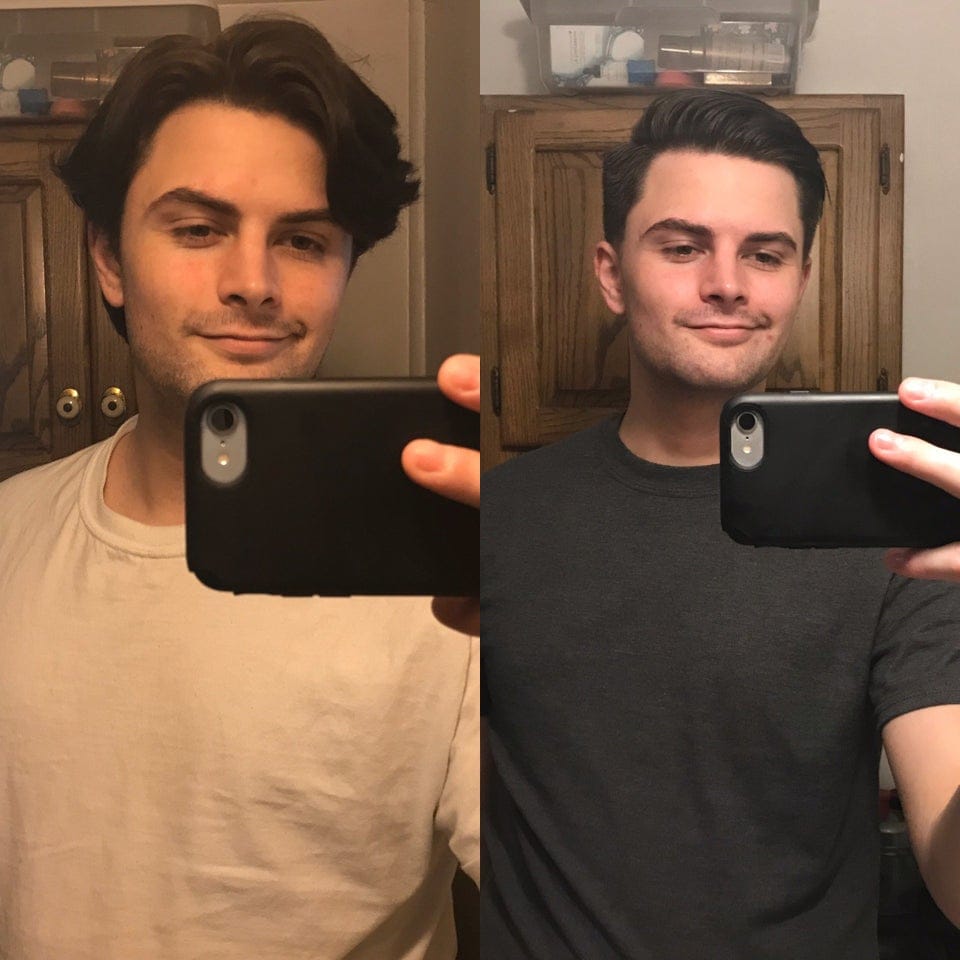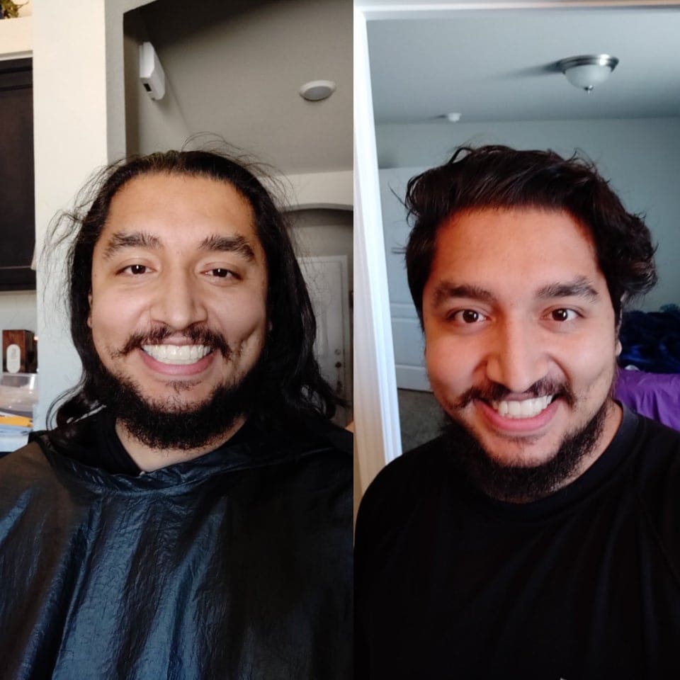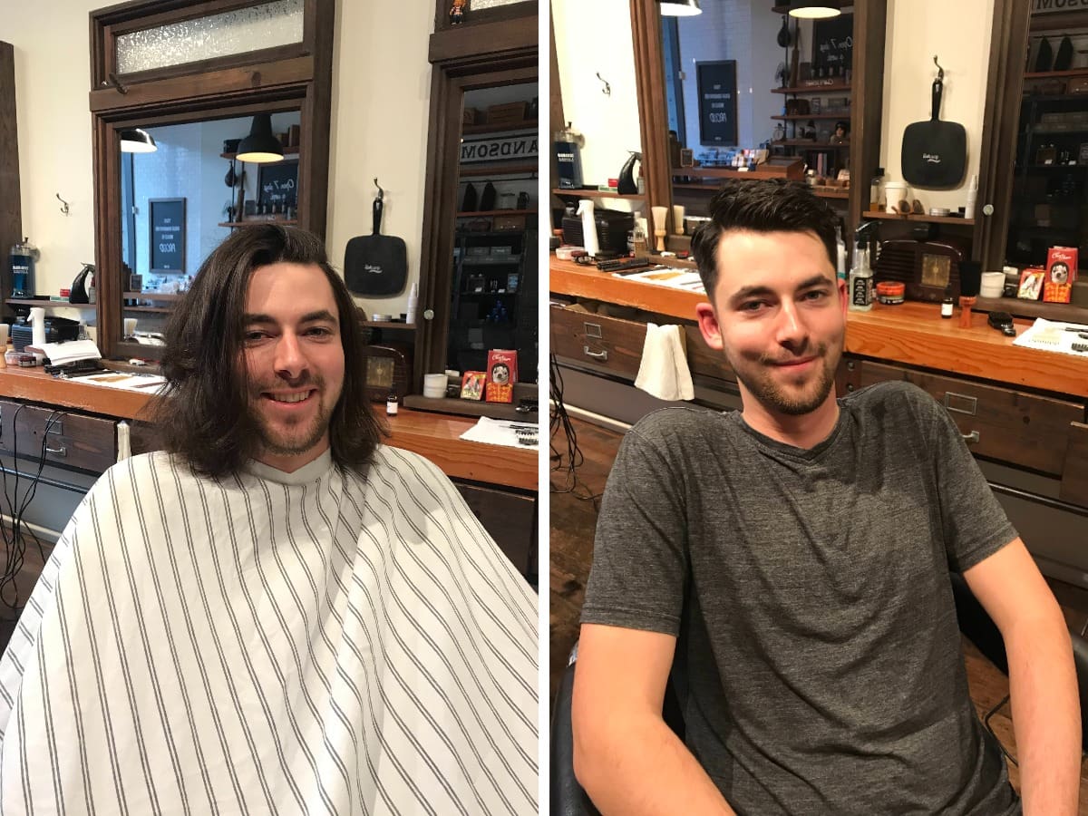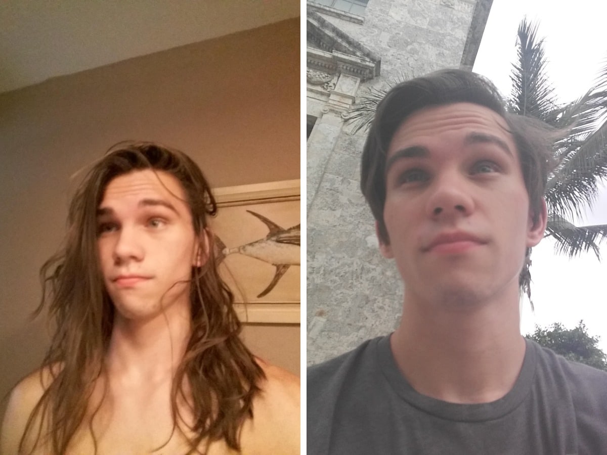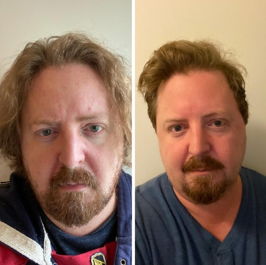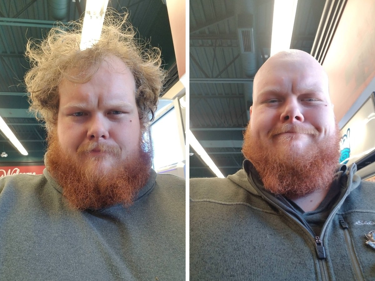 Снимки до и после того, как я распрощался со своей шевелюрой
