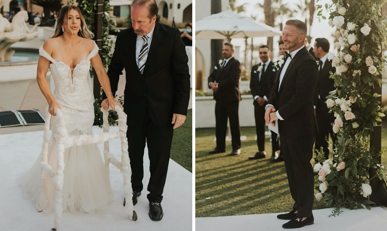 Чтобы встать на ноги, девушка использовала специальное приспособление. На свадьбе Челси также поддерживал отец – именно он взял ее за руку и повел к алтарю.