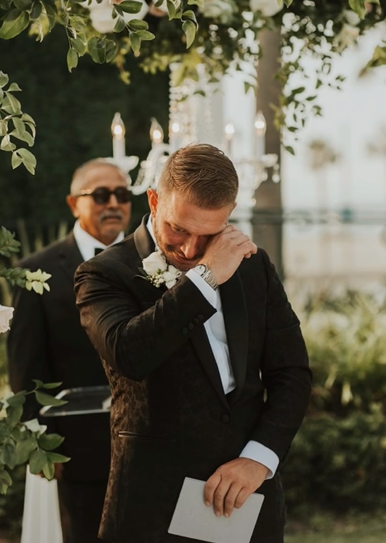 Для парня это было неожиданностью, и он расплакался. Фотограф, работавший на свадьбе, разместил несколько фото с события в сети.