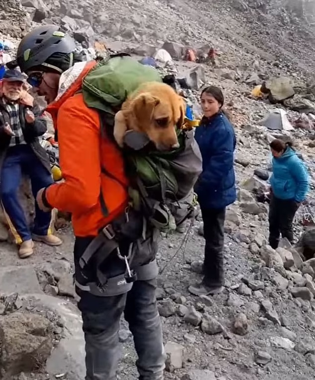 Назад собаку спускали в рюкзаке – альпинисты часто менялись. Лайо поблагодарил всех участников экспедиции, которые помогали ему и животному.