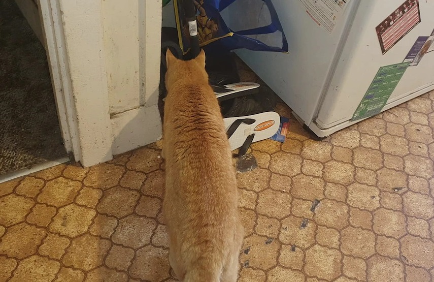 Он агрессировал на мебель, точил когти, отпрыгивал от него. Поведение любимца насторожило мужчину, он решил заглянуть под мебель, но ничего особенного под ним не нашел.