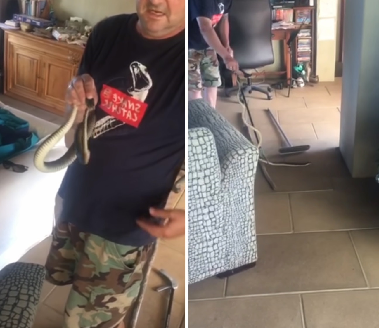 Чтобы убрать змею, супруги обратились к специалисту по имени Джерри – мужчина на протяжении многих лет занимается ловлей рептилий. Однако парень был удивлен такой просьбе и сначала воспринял ее как предпраздничную шутку. Он поверил паре только после того, как увидел сделанные ими снимки.
