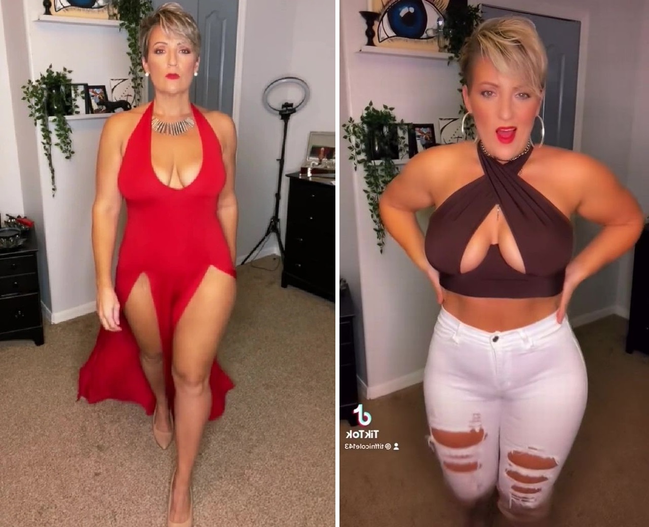 Все ролики Тифани публикует в ТикТок в формате «До-после». На первом кадре она показывается без грамма косметики, на ней одета обычная домашняя одежда, затем кадр сменяется другим под эффектную музыку, и женщина показывает, как выглядит со стильной прической, макияжем, в изысканных нарядах.