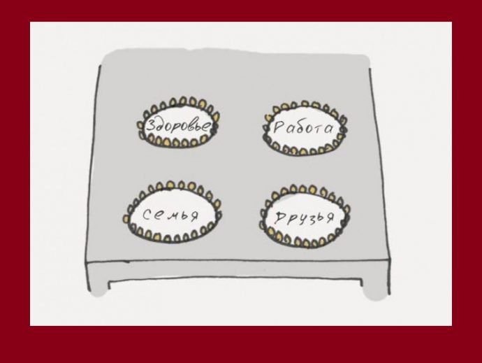 Представьте, что ваша жизнь — это плита, на которой есть четыре конфорки. Каждая из них — один из важнейших аспектов вашей жизни: