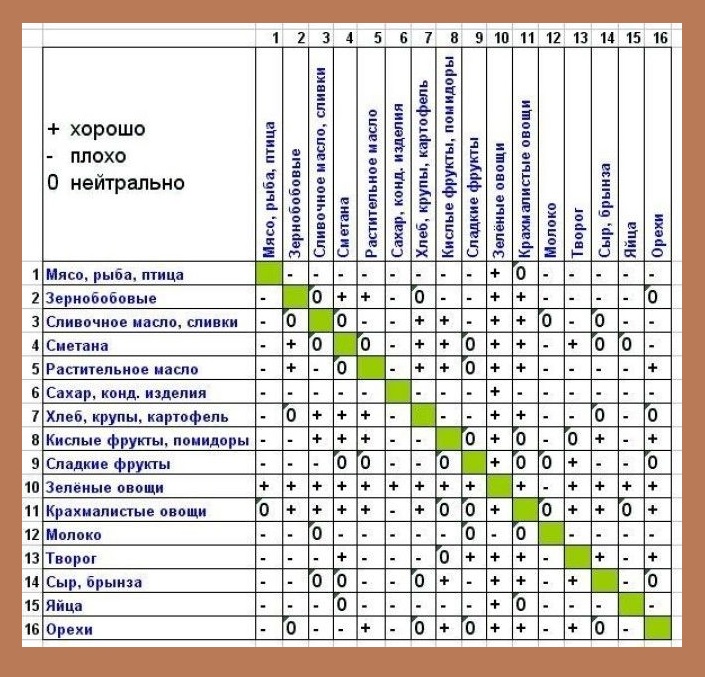 В остальном ты можешь самостоятельно формировать рацион, пользуясь таблицей совместимости продуктов. Одна из самых легких диет для быстрого похудения!
