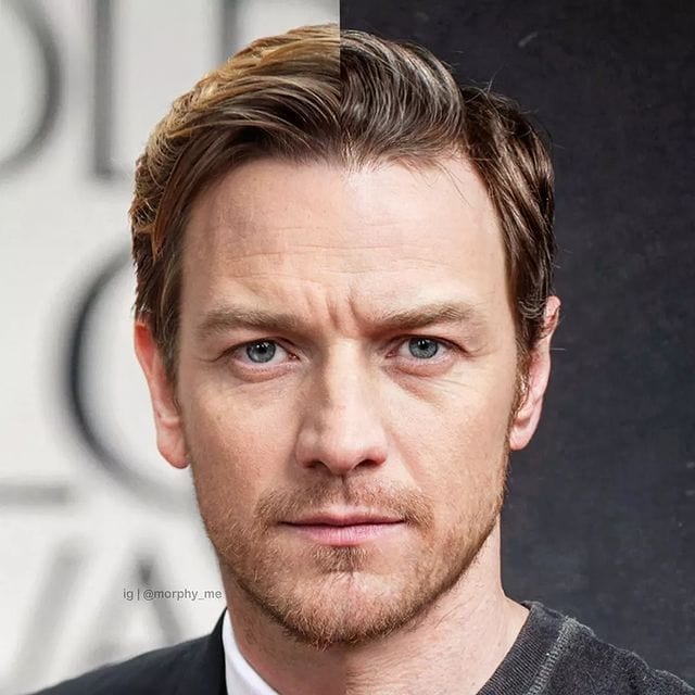 Здесь автор коллажей всё-таки оставил шов, разделяющий фото, чтобы подчеркнуть, как же всё-таки похожи два этих шотландца.