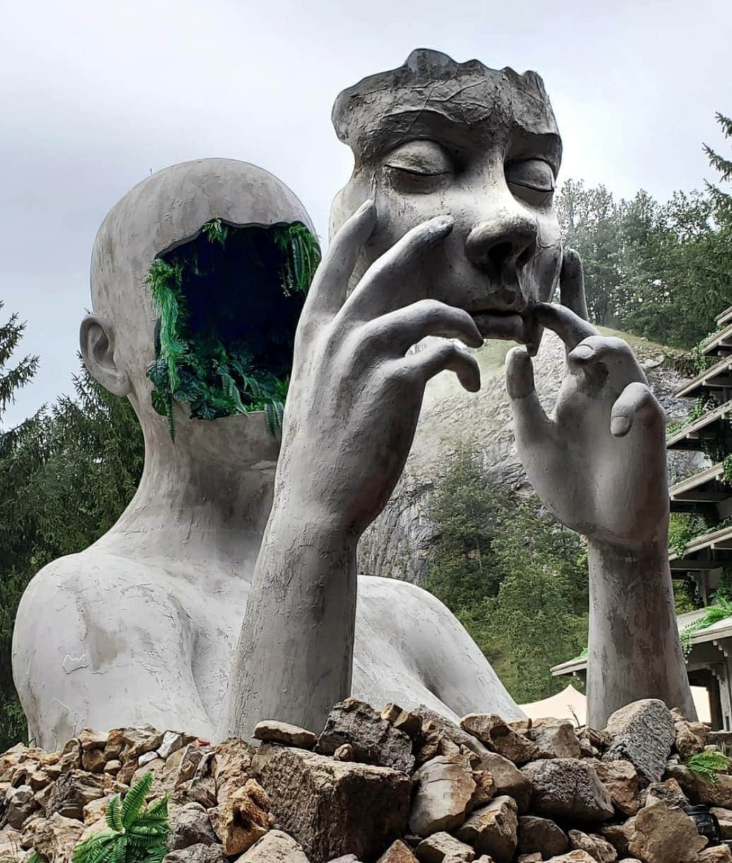 Модемное болото — 8-метровая скульптура в виде женской фигуры, которая была представлена на фестивале в Хорватии в 2019 году. Она изображает человека, который держит маску на расстоянии от лица, а за ней скрываются настоящие дикие джунгли. Ночью проекционное картирование фигуры заставляет подумать, что она была сделана из хрома! Но нет, материалом, которым пользовался скульптор при её создании были сталь, стекловолокна и бетон.