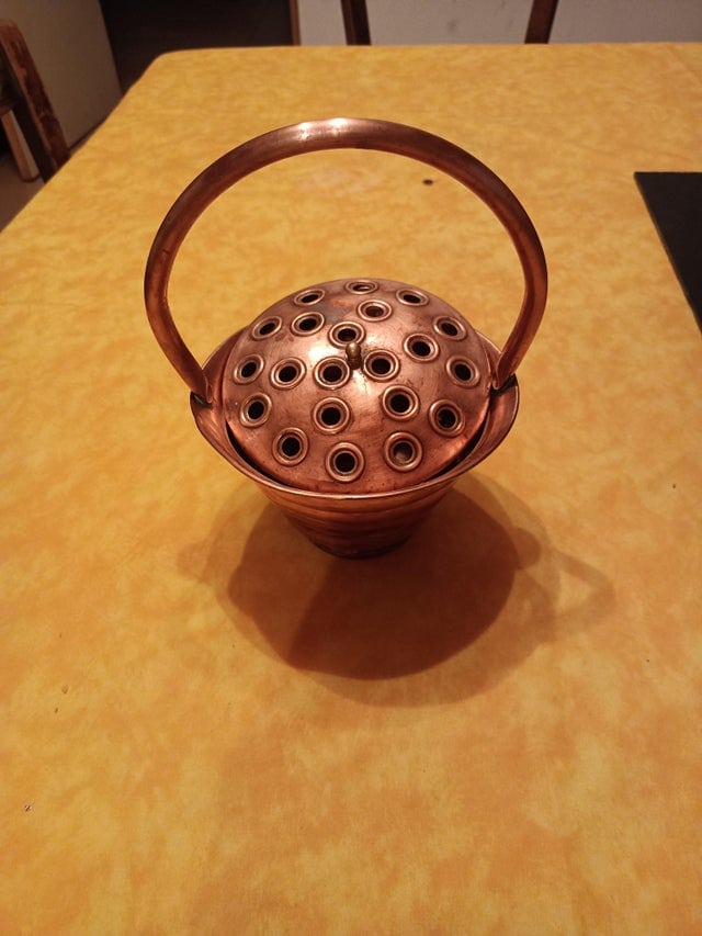 Медный контейнер с отверстиями на крышке. Найден на дворовой распродаже во Франции. Есть догадки?