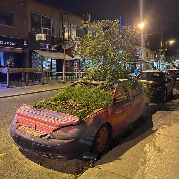 11. Этот автомобиль так долго стоял на парковке, что его превратили в городскую клумбу