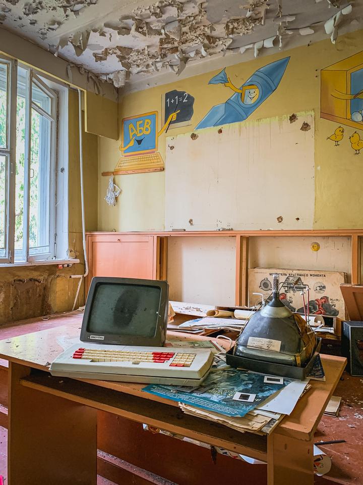 2. Один из классов закрытой общеобразовательной школы со старым компьютером на парте