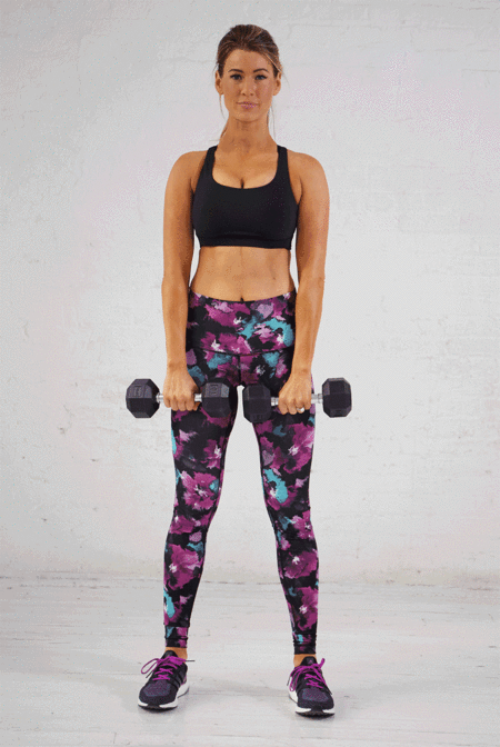 Фитнес-коврик и гантели. До 3 кг для новичков, до 6 кг при среднем уровне, для профи до 8 кг. Можно взять бутылки с водой или песком вместо гантелей.