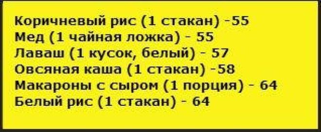 Тело каждого человека по-разному реагирует на пищевые продукты. Лучший способ узнать, как пища влияет на вас – проверить уровень глюкозы в крови до еды и через два часа после еды. Тем не менее, список продуктов питания с гликемическим индексом может быть хорошим ориентиром, чтобы сделать выбор в пользу здоровых продуктов питания.