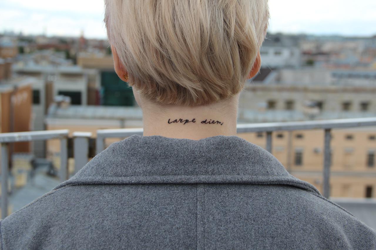 2. Перед тем, как сделать татуировку с надписью, тщательно проверь написание всех слов, особенно если текст иностранный. В процессе мастер не один раз обводит рисунок и корректирует его, а потому проверяй орфографию регулярно.