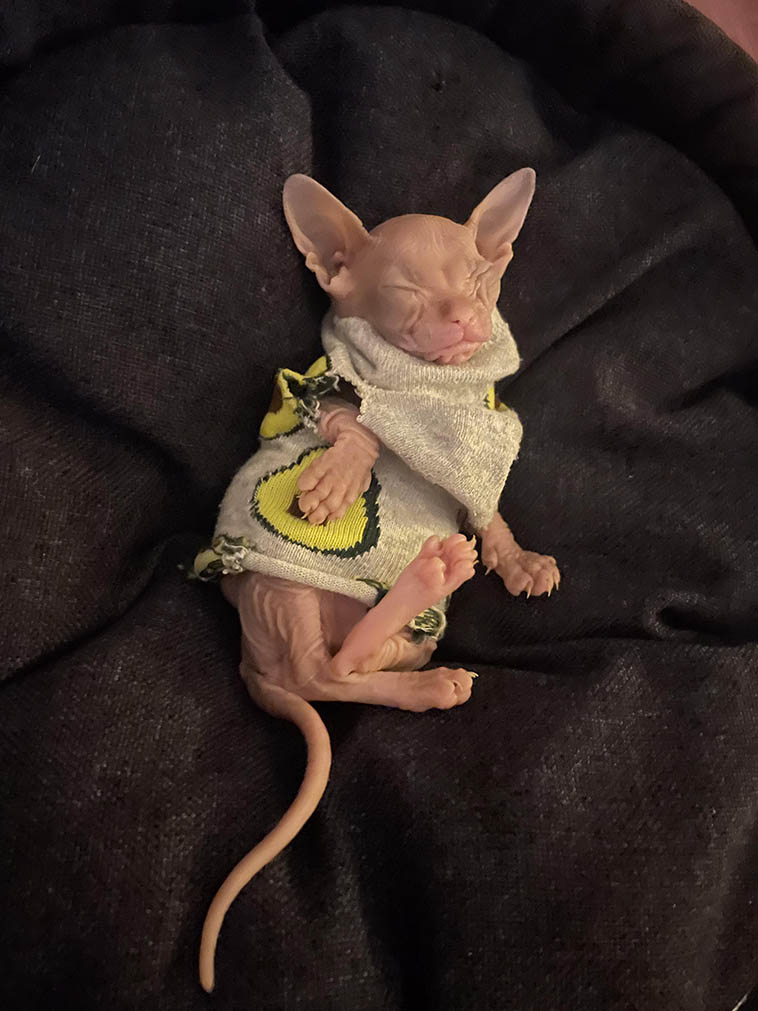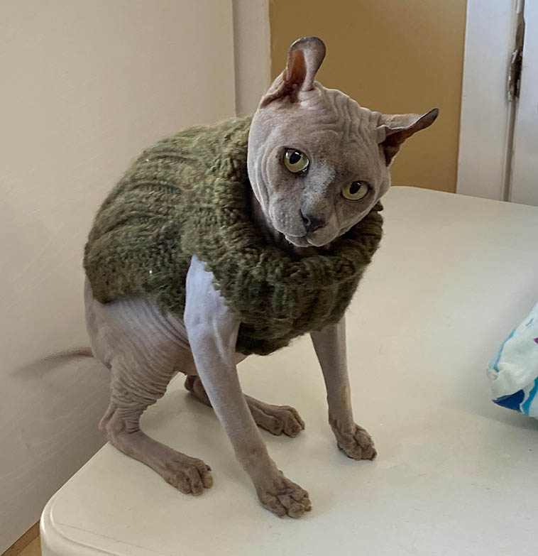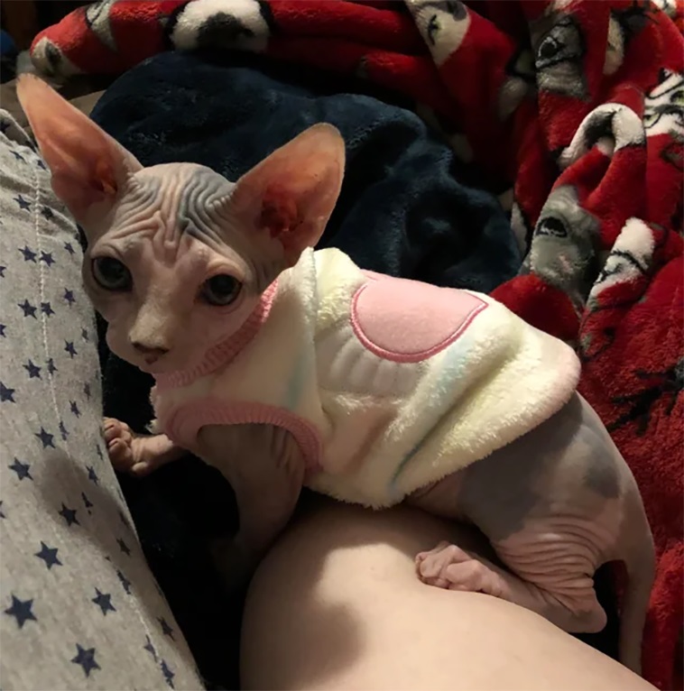 2. Из-за отсутствия шерстки, сфинксы очень мерзнут, поэтому без теплой вязаной одежды никуда