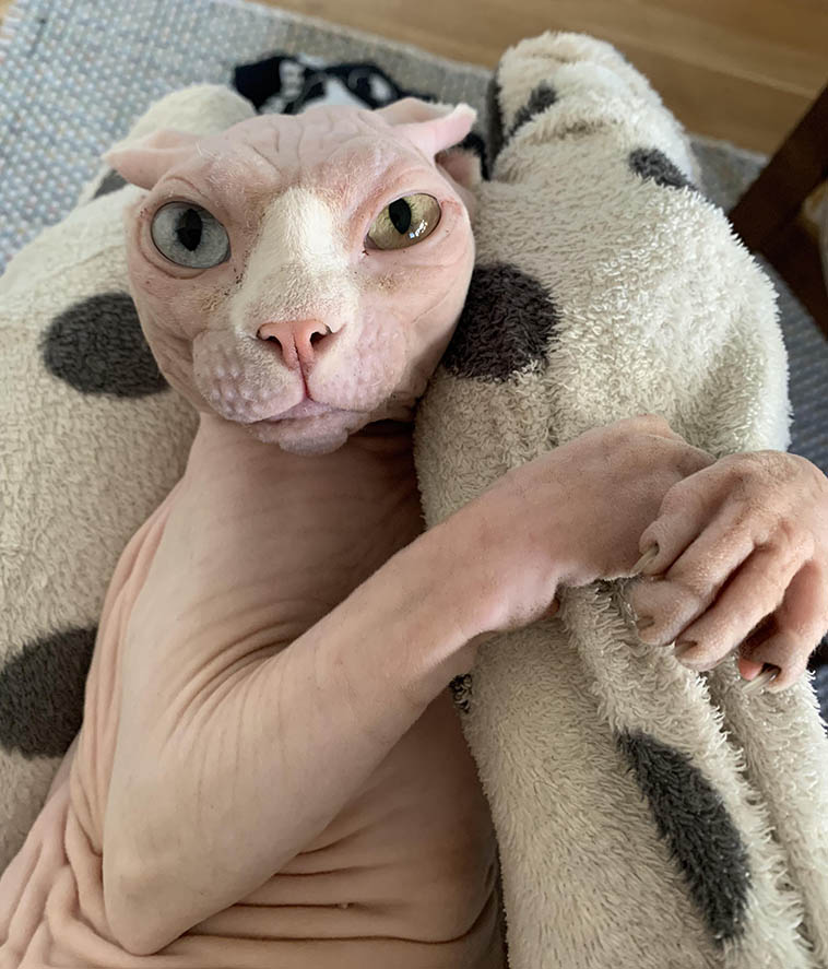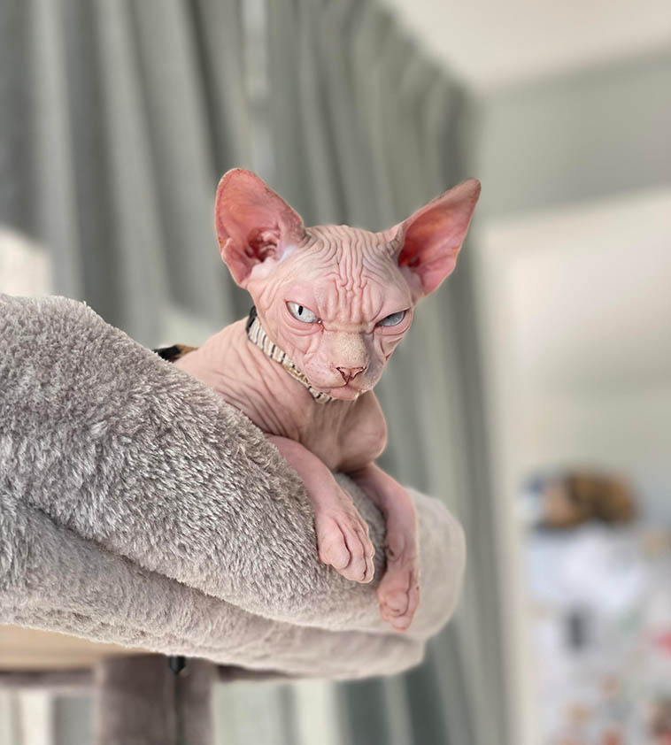Как бы то ни было, а от отсутствия внимания сфинксы точно не страдают. Несмотря на это, в обычной жизни они ведут себя точно так же, как и другие кошки. Они много спят, дурачатся и обожают понежиться у хозяина на ручках. Единственное отличие от представителей других пород — это отсутствие шерсти, из-за чего сфинксы часто мерзнут. А это значит, что им необходима не только теплая одежда, но также удвоенная доза обнимашек и целовашек.